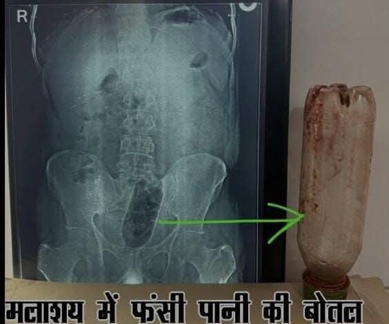 असहनीय दर्द के बाद अस्पताल पहुंचा युवक, एक्सरे में दिखी एक लीटर की बोतल