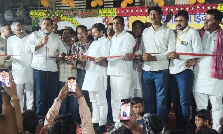 आंवलखेड़ा। ग्राम खांडा के ऐतिहासिक मेले में शनिवार रात हास्य कलाकार बापू गप्पी के कार्यक्रम का उद्घाटन मुख्य अतिथि पूर्व एमएलसी दिलीप यादव एवं विशिष्ट अतिथि दिनेश राठौर, ऋषि यादव और डॉ. महेश चौधरी ने संयुक्त रूप से फीता काटकर किया।