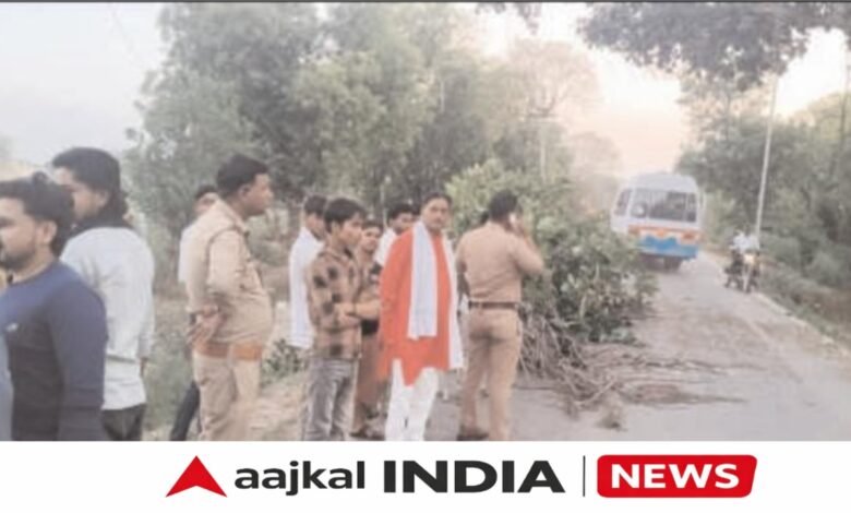 पुलिस ने ग्रामीणों की सहायता से गिरी हुई टहनी को सड़क से हटवाकर किनारे कराया, जिसके बाद यातायात पुनः सुचारू हो सका।